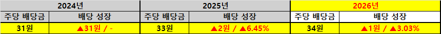 | 배당 성장 | +1원 / +3.03% |