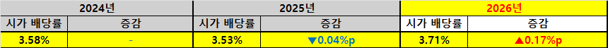 | 지난해 동기 대비 시가 배당률(YoY) | |