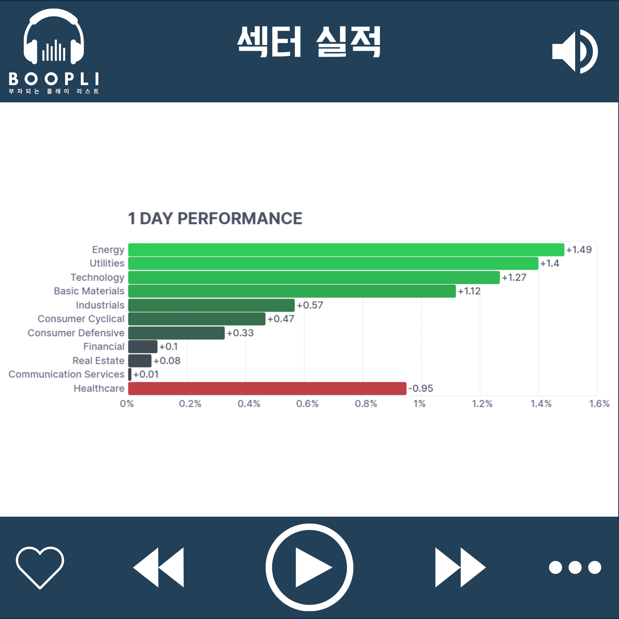 경기 방어주, 금융, 부동산, 커뮤니케이션 서비스 섹터는 강보합 마감
