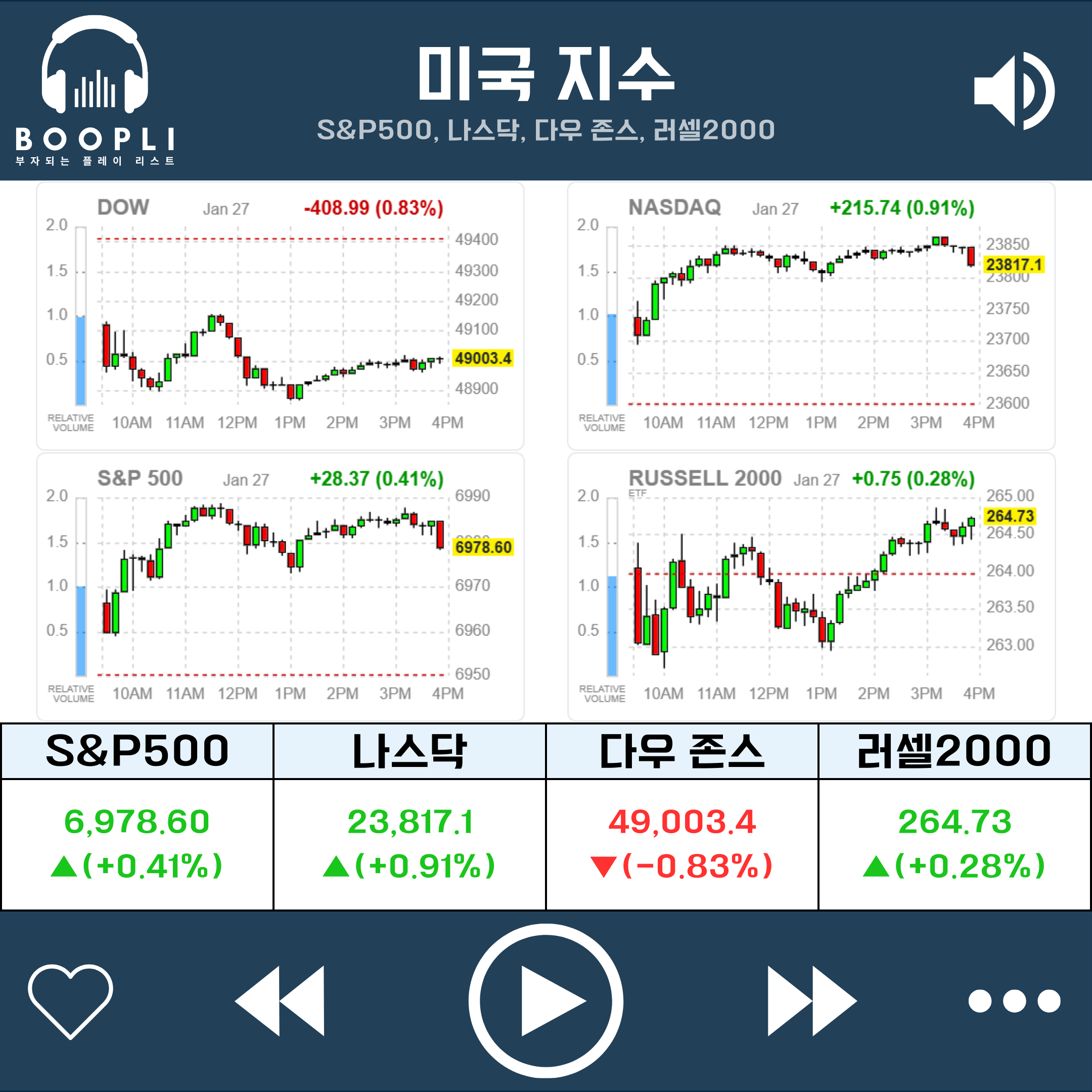 장 후반으로 갈수록 마이크로소프트·메타·애플 등 ‘매그니피센트7(M7)’의 실적 발표를 앞둔 AI 수익화 기대가 재차 부각되며 S&P500은 신고가를 경신했고, 나스닥과 러셀2000도 상승 흐름을 유지