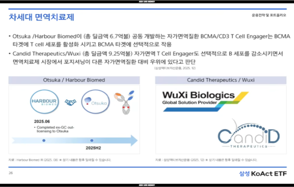 차세대 면역치료제로 자가면역 치료제를 만드는 회사가 CANDID와 OTSUKA이다. 이름만 들으면 미국 회사일 것 같지만 중국회사이다. 자가면역질환인 건선이나 류마티스 관절염, 루푸스 같은 병을 말하는데 BCMA/CD3 T CELL ENGAGER를 통해 T CELL 세포를 활성화시키고 자가면역 질환을 치료하며. 선택적으로 B세포 역시 감소시키면서 면역치료제 시장에서 높은 점유율을 가지기 시작하였다.