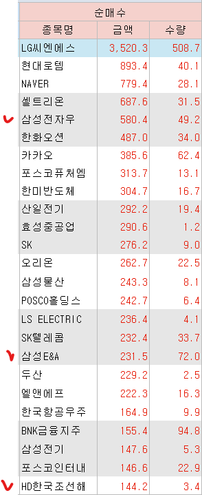 <외국인 매수 종목>