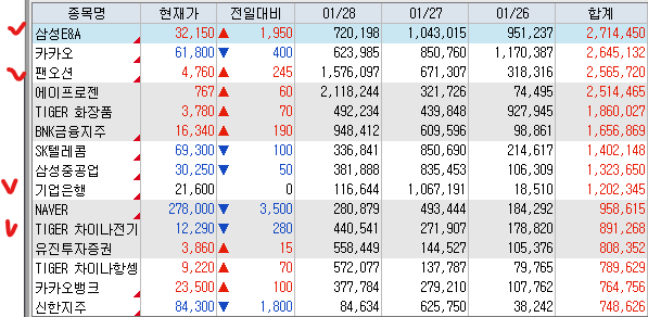 매수 : 맥쿼리인프라 제이알글로벌리츠 삼성전자우 삼성E&A HD한국조선해양 시노펙스 팬오션 Tiger차이나전기차 기업은행