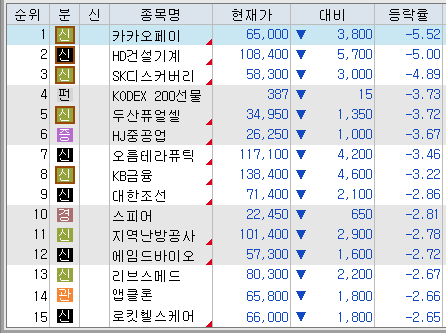 <연기금 순매수 상위 종목>