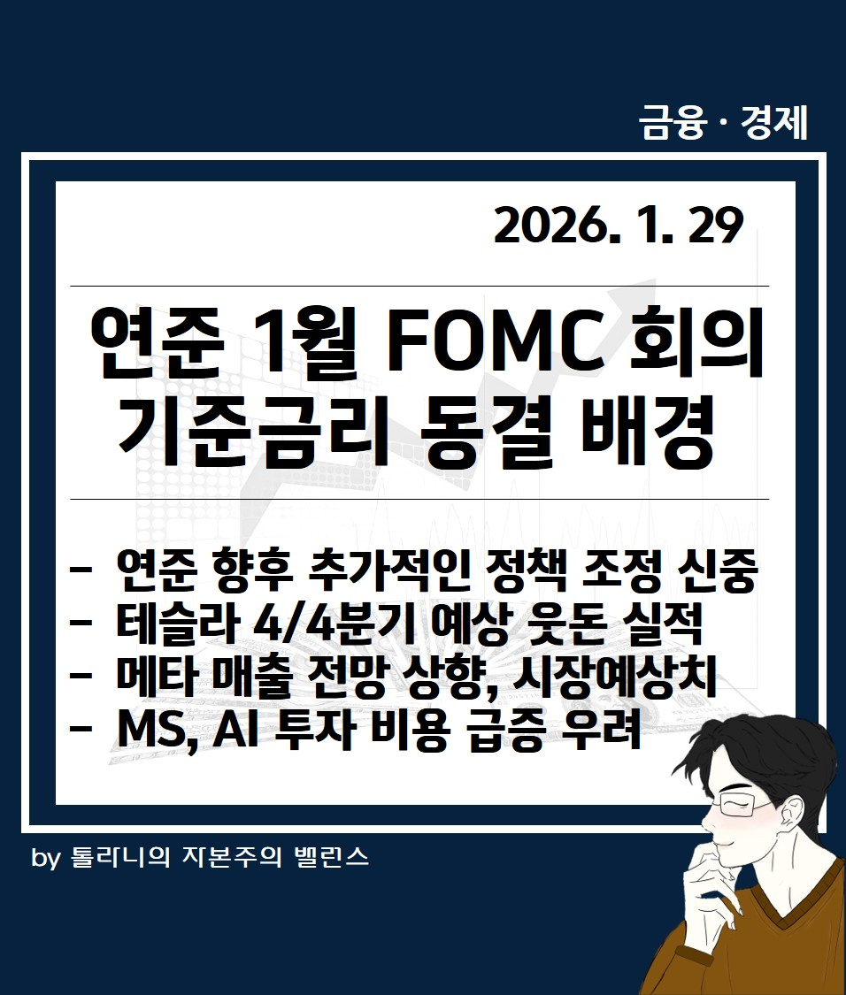 이에 '연준 1월 FOMC 회의 기준금리 동결. 테슬라, 마이크로소프트(MS), 메타 실적 발표 등 미국 증시 및 주요 국가 경제·금융 동향' 관련하여 언론 보도 및 국제금융센터 보고서를 통해 좀 더 자세히 알아보도록 하겠습니다.