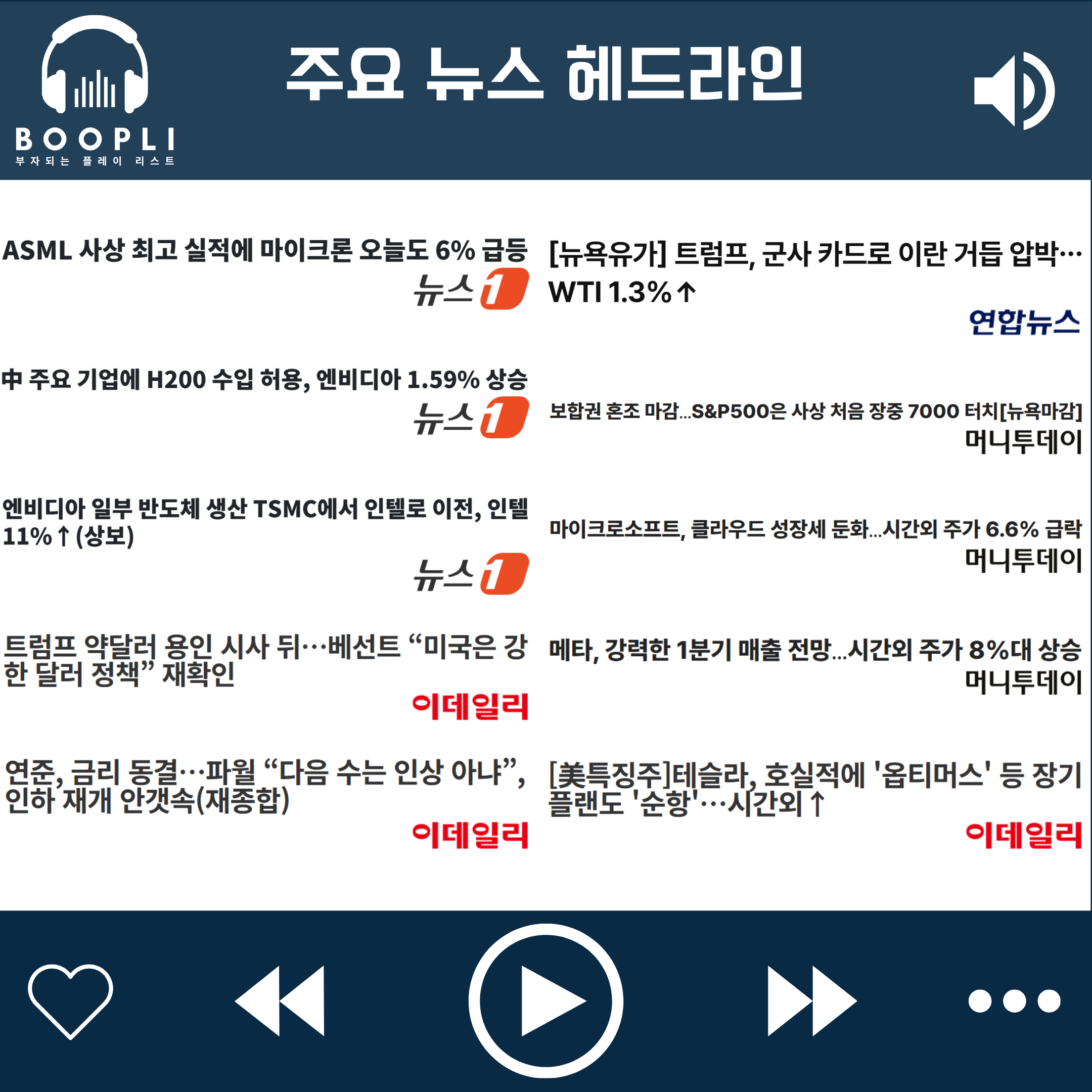 특히 ASML의 호실적과 고대역폭메모리(HBM) 수요에 대한 긍정적 언급에 마이크론이 급등했고, 중국 당국이 자국 빅테크 기업의 엔비디아 H200 구매를 승인했다는 소식에 엔비디아가 상승