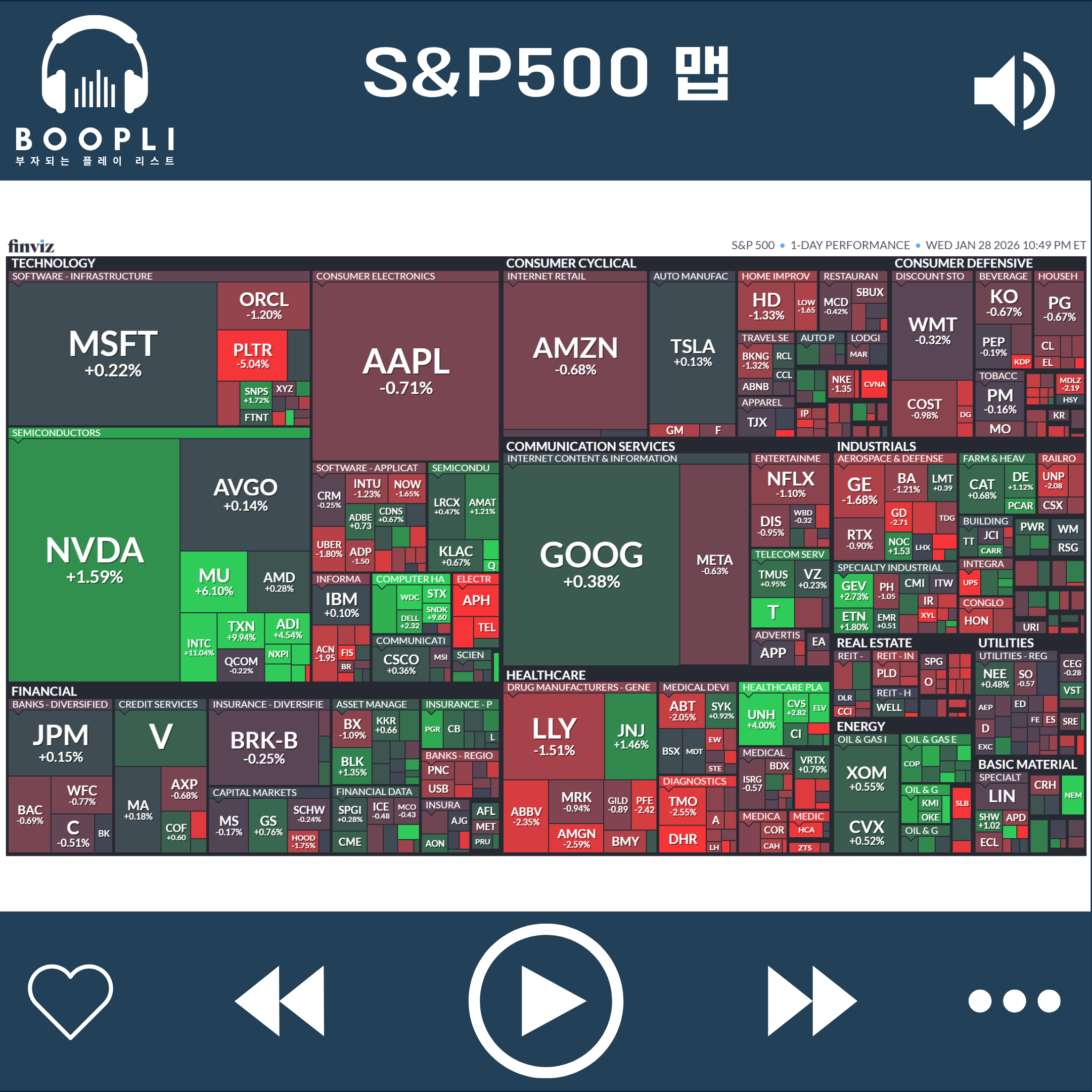 반면 마이크로소프트는 클라우드(Azure) 성장 둔화와 대규모 AI 투자에 따른 비용 부담이 부각되자 시간외 하락하며, 빅테크 내에서도 실적과 가이던스에 따른 주가 차별화가 뚜렷하게 나타남