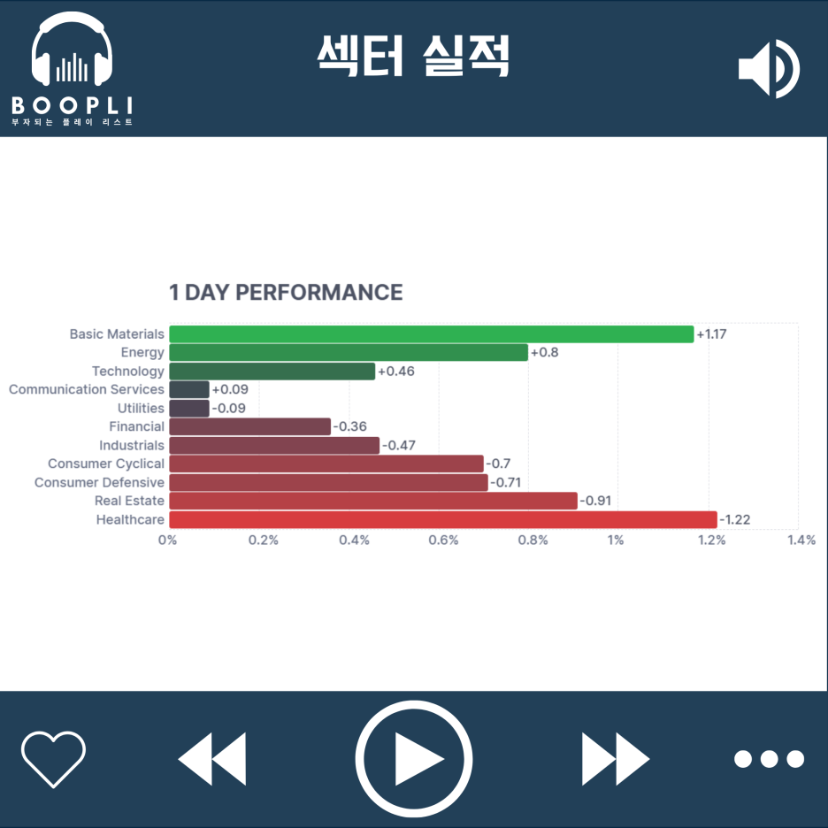 기술, 커뮤니케이션 서비스 섹터는 강보합, 산업재, 금융, 유틸리티 섹터는 약보합 마감