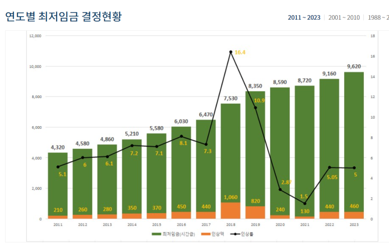 그에 반해 임금은 얼마나 올랐을까요?