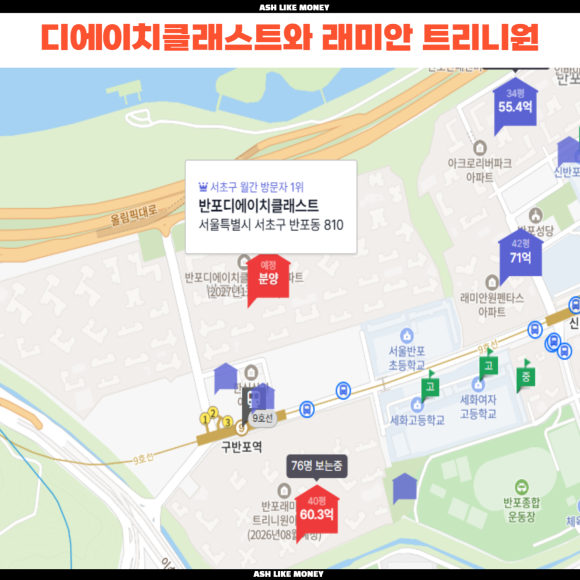 구반포 대장이 아크로리버파크, 래미안 퍼스티지, 반포자이였다면, 신반포 대장은 "래미안 원펜타스", "래미안 원베일리", "디에이치클러스트", "메이플자이"가 있다. 가격은 이제 60~80억대의 시세를 보이며 그들만의 세계가 형성되었다.