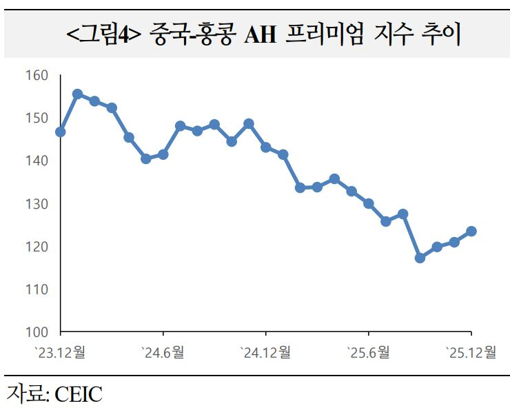 ㅇ AH프리미엄이 `24년 초 156에서 `25년 말 124으로 하락하였으며, 홍콩 주식의 강세가 자금 유입으로 이어지면서 `26년 홍콩 IPO에도 긍정적으로 작용할 전망
