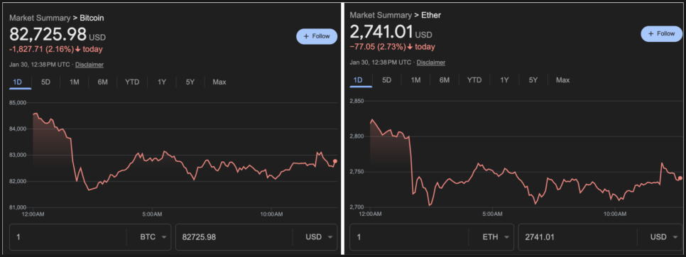 2026년 1월 30일 핵심 암호화폐 이슈 정리하겠습니다.