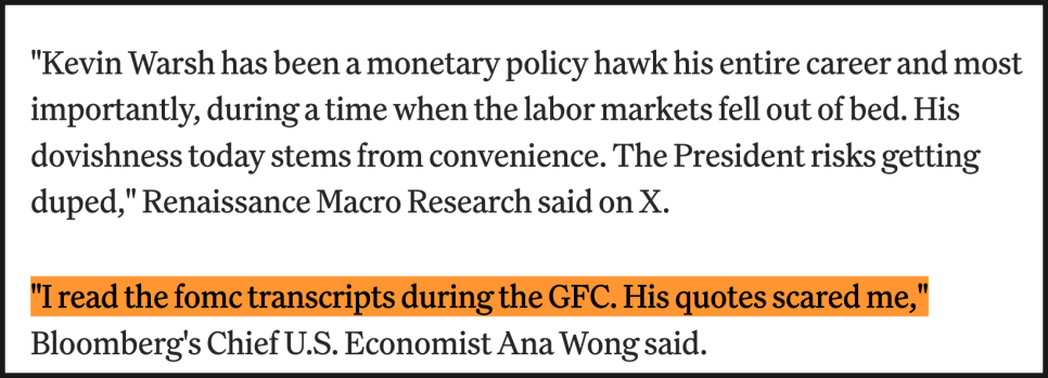 이 때문에 일부 관측통들은 워시가 트럼프의 정책 방향에 꼭 맞는 인물인지에 대해 의문을 제기하고 있는데요. 르네상스 매크로 리서치는 워시가 경력 내내 통화정책 매파였으며, 최근의 온건한 발언은 상황에 따른 것일 뿐이라며 “대통령이 잘못 판단할 위험이 있다”고 평가했습니다. 블룸버그의 수석 미국 이코노미스트 아나 웡 역시 금융위기 당시 FOMC 회의록을 읽고 워시의 발언에 놀랐다고 말했죠.