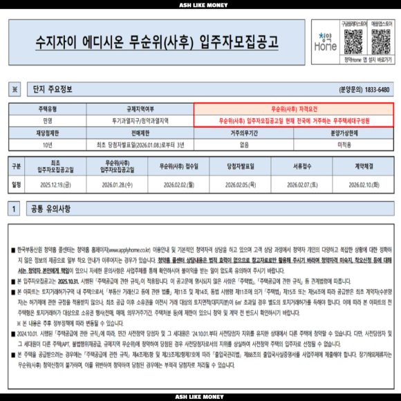 ※ 무순위청약 일정 : 26년 2월 2일
