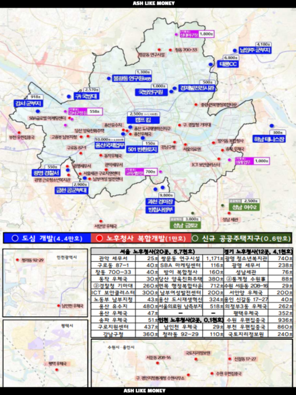 서울 노후청사 20곳으로 관악구 세무서, 구로동, ICT 등이 포함되며 경기도는 12곳으로 광명 청소년복지관, 광명 세무소 등이 있다. 그래도 여기 가장 핵심인 것은 "용산 국제업무지구", "과천 경마장", "태릉 C.C"에 공급을 추진한다는 것이다. 강력한 추진력을 확보하기 위해 특별법 발의를 하며, 보상 등 택지사업을 빠르게 하기 위해 정비제도를 손보려고 한다. 하지만 정부가 공급하겠다고 발표만 되고 실제 진행이 되려면 충분한 재원확보, 관련 부서와의 협업, 지역주민들과의 소통 등의 조건이 먼저 필요하다.
