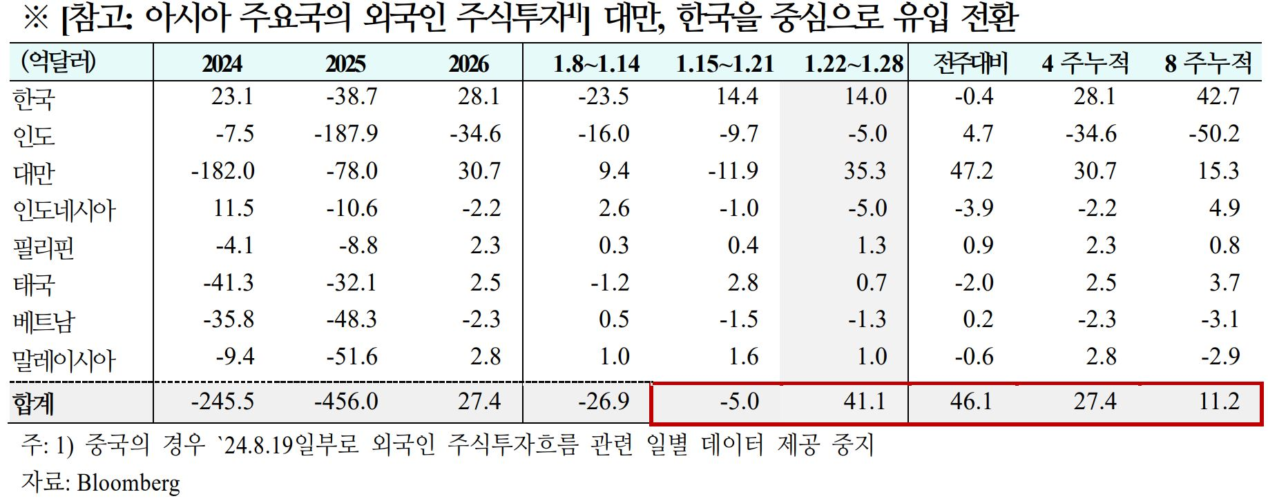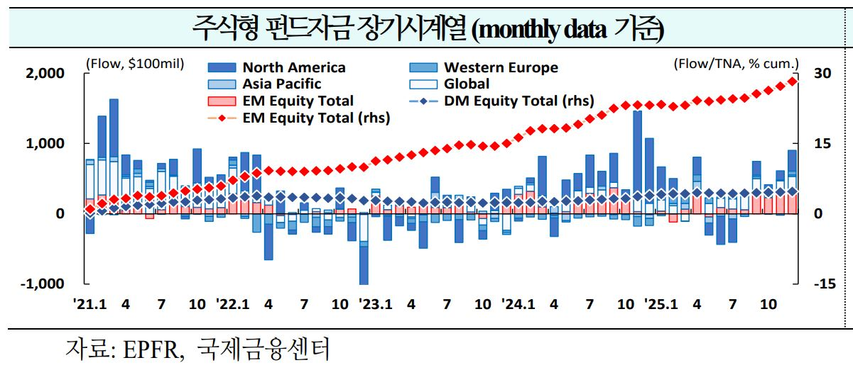 이에 ‘주간 글로벌 투자 자금 흐름(26년 1월 22일(목) ~ 1월 28일(수))’ 관련하여 국제금융센터 보고서를 통해 좀 더 자세히 알아보도록 하겠습니다.