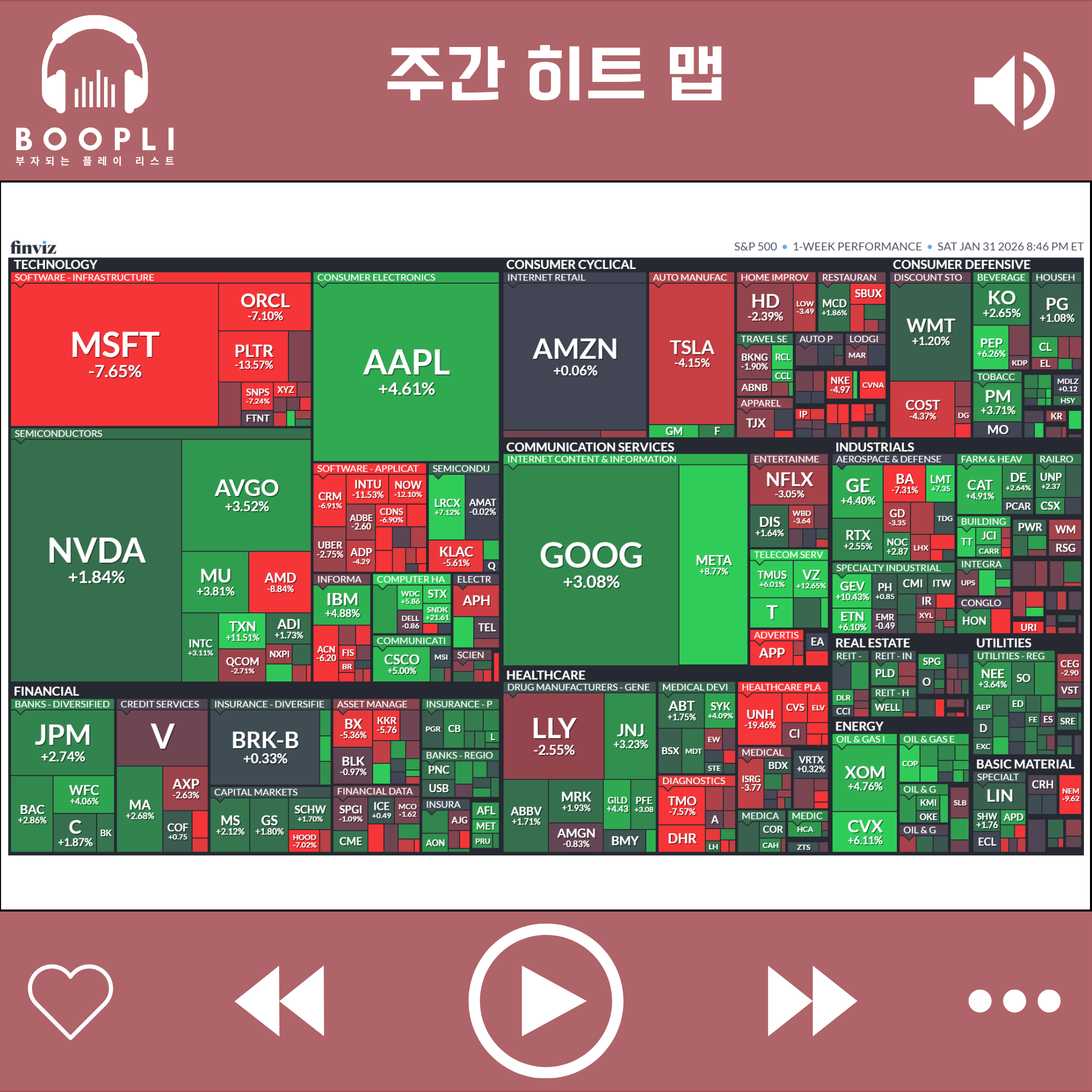 주 중반에는 1월 FOMC가 기준금리를 예상대로 동결하고 반도체 업종의 호실적이 이어지며 S&P500이 장중 7,000선을 돌파하기도 했으나, 마이크로소프트의 클라우드 성장 둔화와 대규모 AI 투자 비용 부담이 부각되자 기술주 전반에 걸쳐 '옥석 가리기'가 진행되며 하방 압력이 커졌다.