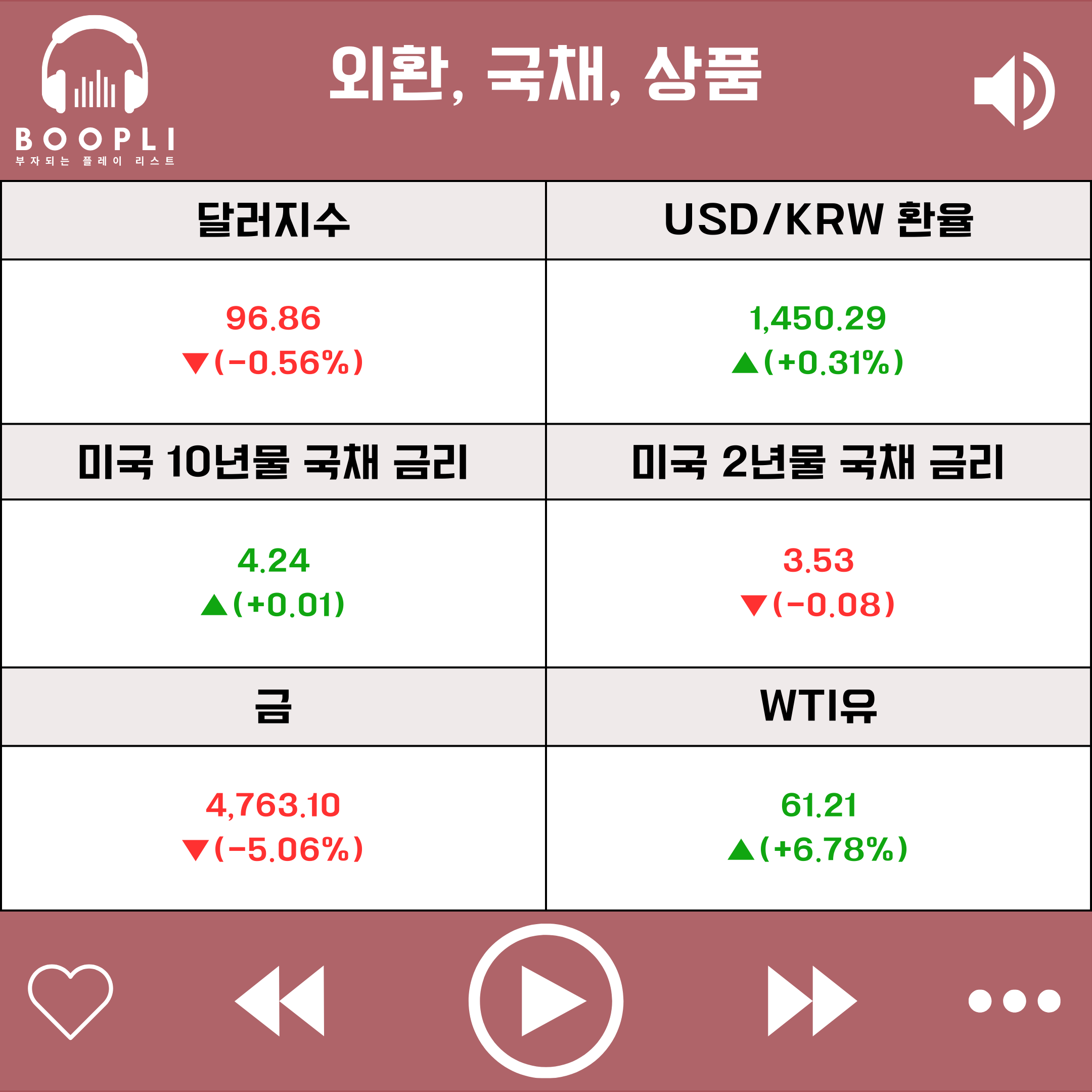 달러지수는 하락하고 USD/KRW 환율은 상승하며 원화 약세를 보였다.