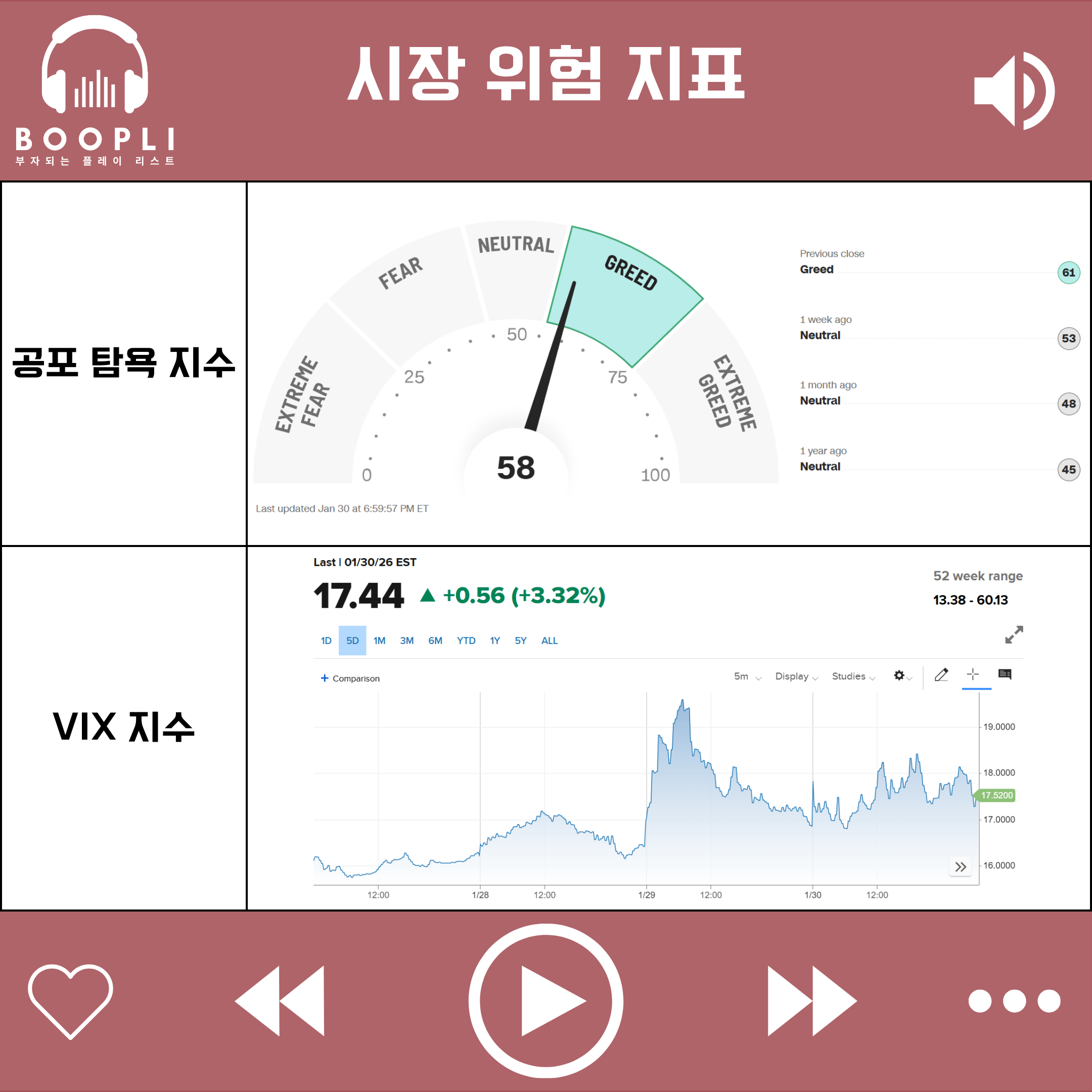 공포 탐욕 지수는 1주일 전 대비 상승했으며 중립(Neutral) 단계에서 탐욕(Greed) 단계로 진입했다.