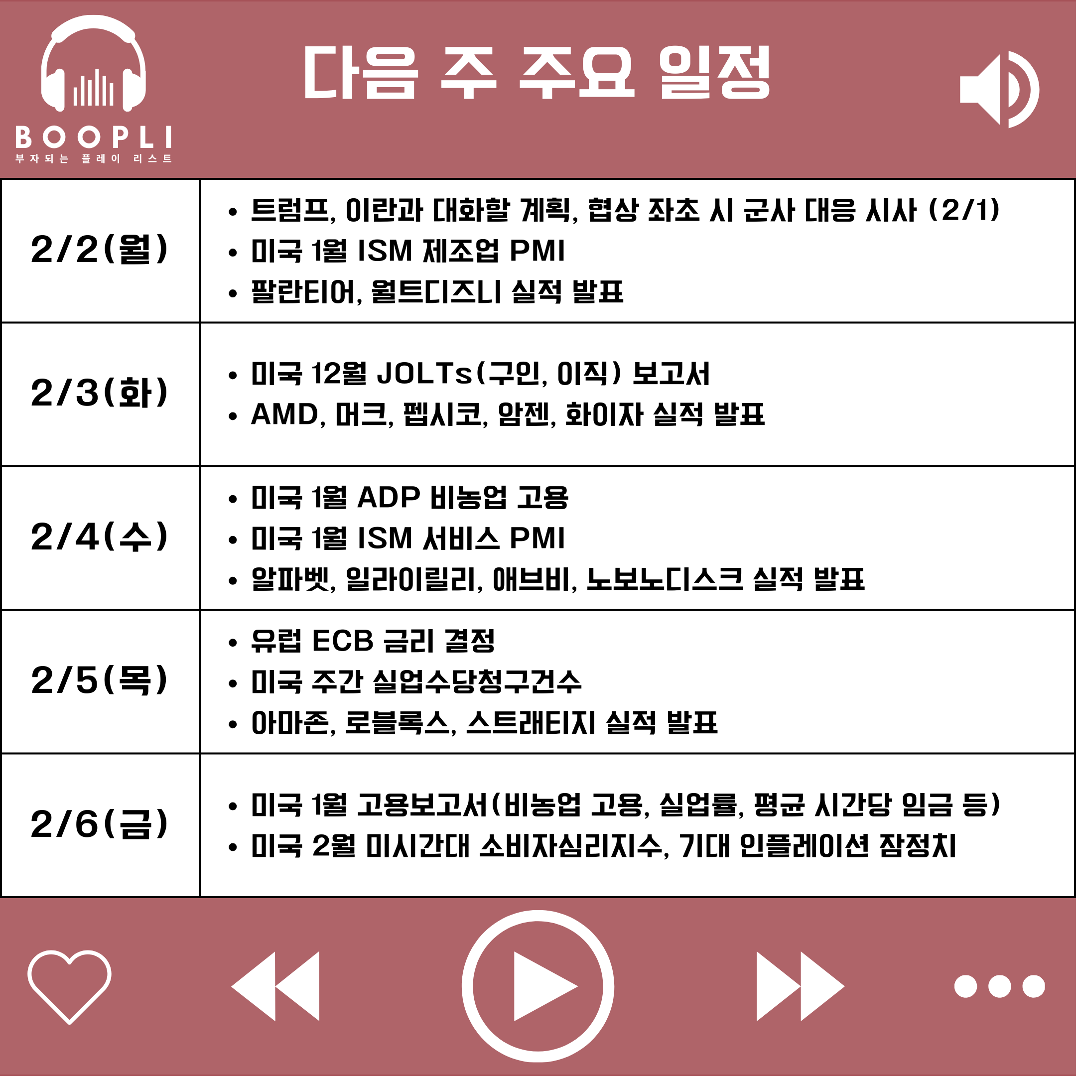 다음 주 미국 증시는 케빈 워시 차기 연준 의장 지명에 대한 시장의 재해석이 이어지는 가운데, 미·이란 지정학적 긴장과 연방정부 셧다운 관련 정치 이슈가 잔존한 상황에서 고용·경기 지표 및 주요 기업들의 실적 발표를 소화하며 변동성이 확대될 가능성이 있다.