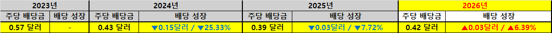| 배당 성장 | +0.03달러 / +6.39% |