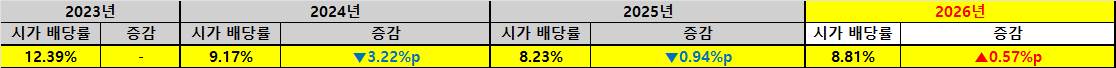 | 지난해 동기 대비 시가 배당률(YoY) | |