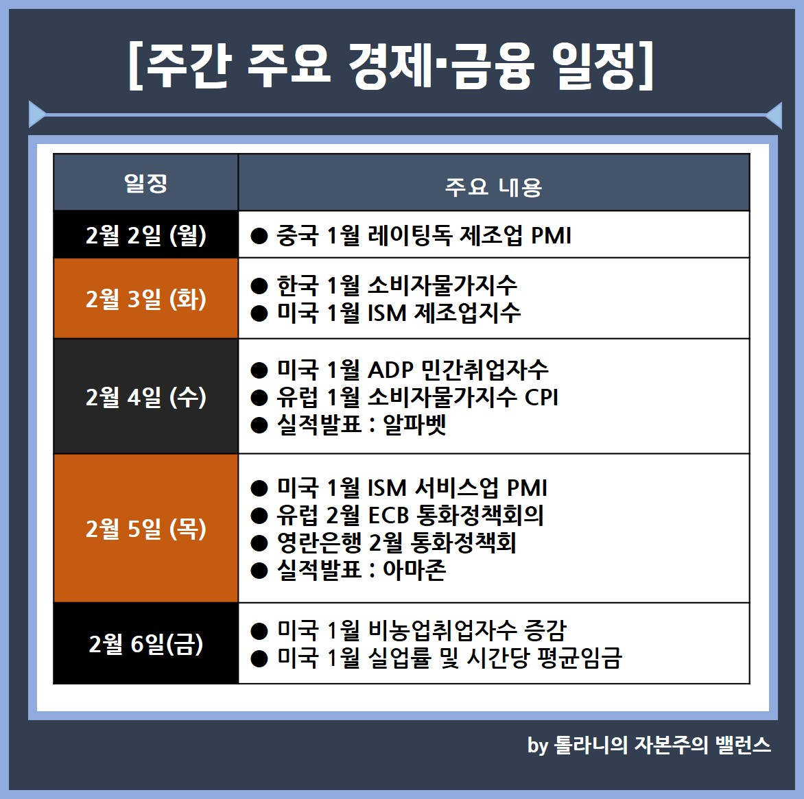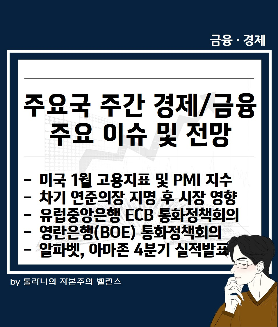 지금까지 '미국 1월 고용지표, 제조업 PMI 지표 등 주간 증시 일정 및 주요 국가 경제·금융 이슈' 관련하여 알아보았는데요.