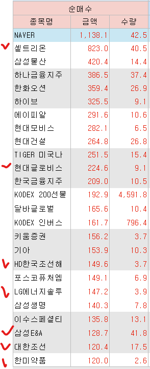 <연기금 순매수 상위 종목>