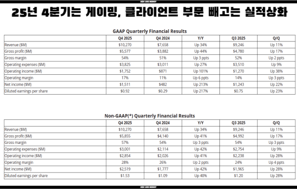 현재 AI버블에 대한 우려로 나스닥이 하락하는 모습을 보여주고 있다. 그럼에도 불구하고 AMD는 26년에도 승승장구할 것이라는 전망을 보였다. 긍정적인 부문으로는 강력한 에픽 CPU와 GPU 수요가 26년에도 이어지면서 대형 클라우드 업체와의 계약이 더욱 확대되고 있다고 한다. 리사수는 MI400 시리즈와 헬리오스 플랫폼에 대한 고객참여도 활발하다고 발표했다. 오픈AI와의 파트너쉽을 맺고 GPU 인프라를 공급하며 헬리오스와 MI400 뿐만 아니라 새로운 2나노미터 공정과 CDNA6 아키텍처, MI500 같은 신제품 역시 개발 중이라 한다.