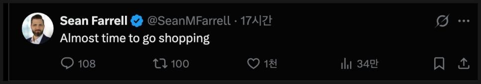 한편 비트코인이 급락하기 불과 몇 시간 전, 션 패럴은 SNS에 “Almost time to go shopping” 이라는 짧은 문구를 올렸습니다. 이게 곧바로 바닥 선언이라는 뜻은 아닙니다. 하지만 최소한 션 패럴이 보고 있던 가격 구간, 그리고 그가 생각한 ‘리스크 대비 매력 구간’이 마침내 다가왔다는 거죠.