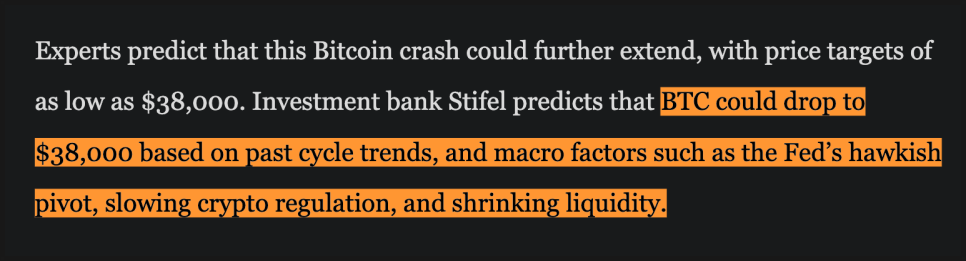 여기서 재밌는 건, 작년 12월 말에 논란이 됐었던 톰 리 회사 소속 애널리스트 션 패럴의 비트코인 하락 전망이 6만 달러였다는 건데요.