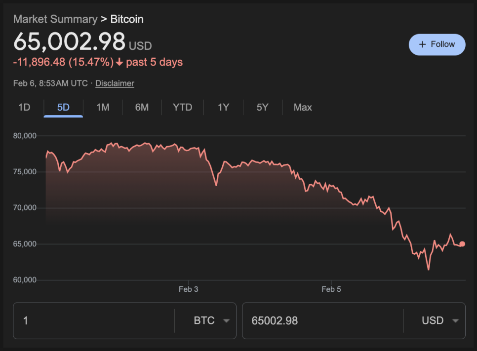 비트코인이 한때 6만 달러 선까지 급락하는 이른바 플래시 크래시가 발생했습니다. 비트코인 가격은 현지시간 목요일 저녁, 약 7시 20분쯤 6만 달러까지 밀리면서 2024년 9월 이후 가장 낮은 수준을 기록했습니다. 불과 24시간 만에 약 17% 하락한 셈이죠. 이후에는 6만5천 달러 안팎까지 반등하긴 했지만, 가격 변동성이 상당히 커진 상태입니다.