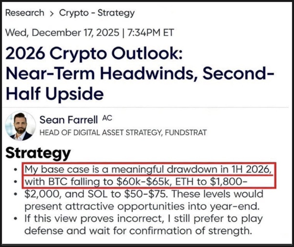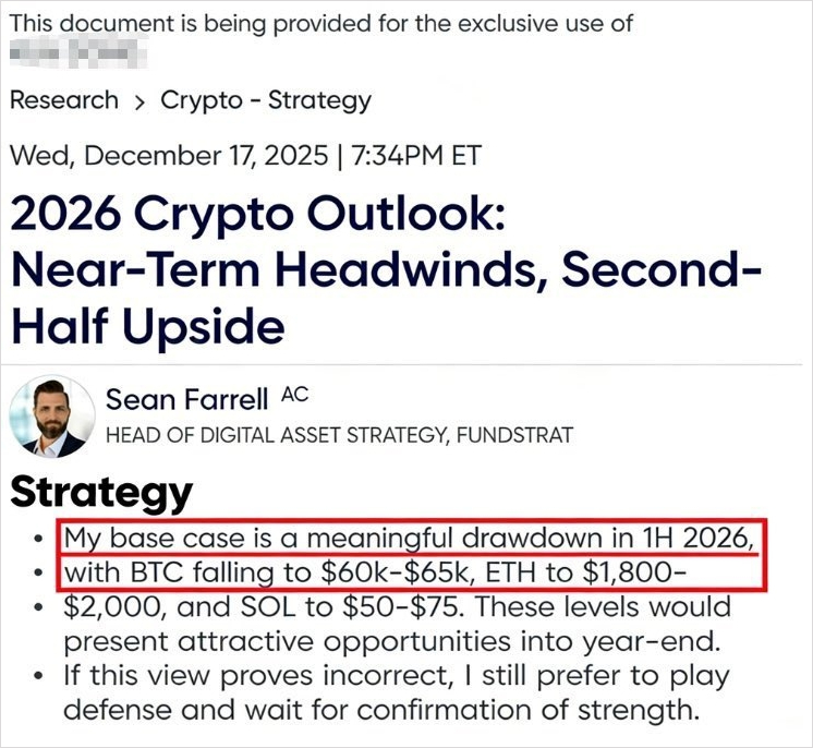 지난해 12월, 펀드스트렛 내부에서 션 패럴은 2026년 상반기 조정 가능성을 언급한 바 있습니다. 그의 전망은 꽤 구체적이었는데, 비트코인은 6만 달러에서 6만5천 달러 구간, 이더리움은 1,800달러에서 2,000달러까지 내려올 수 있다는 내용이었습니다.