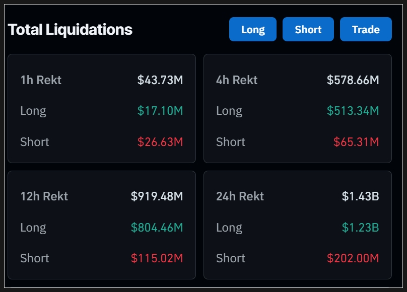 이 급락의 여파로 청산 규모도 매우 컸습니다. 24시간 동안 약 14억 달러 규모의 포지션이 강제 청산됐는데, 이 가운데 12억 달러 이상이 롱 포지션이었습니다. 상승에 베팅했던 자금이 대거 정리되면서 변동성이 더 커진 구조입니다.