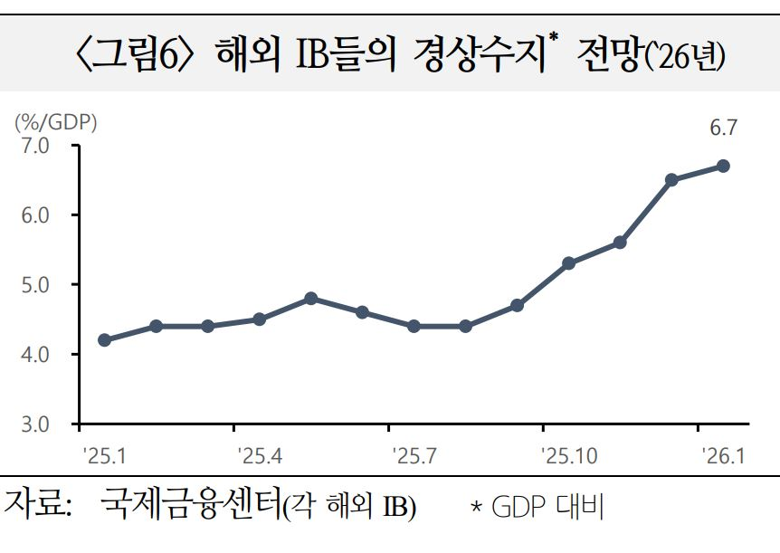 * 해외 주요 IB들의 `26년 경상수지 전망치(GDP 대비, 평균)는 `25.12월말 6.5%에서 `26.1월말 6.7%로 상향