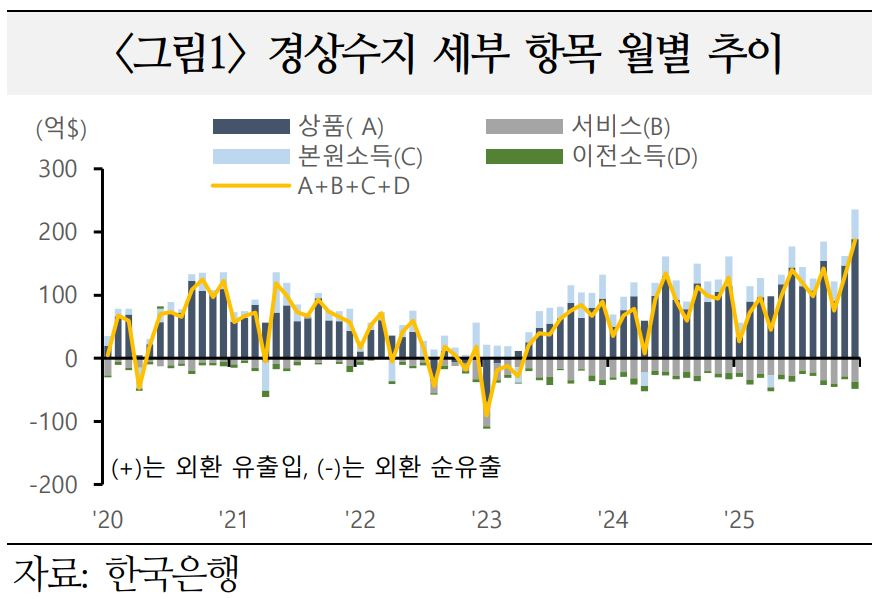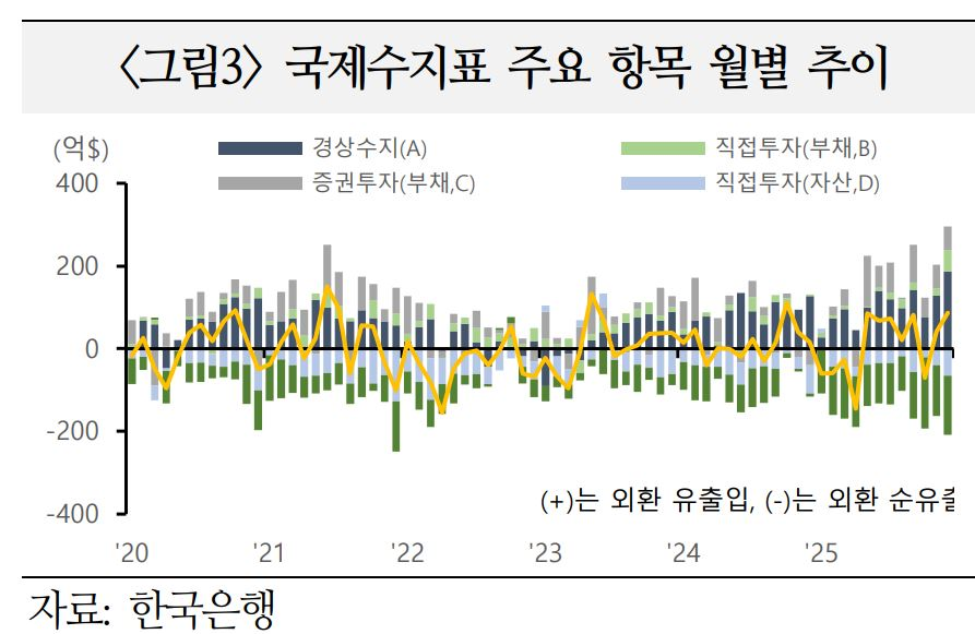 `25년 12월 경상수지가 사상 최대 흑자를 기록하면서, 내ㆍ외국인의 직접투자 및 증권투자에서 발생한 외환ㆍ외화자금 순유출을 상쇄