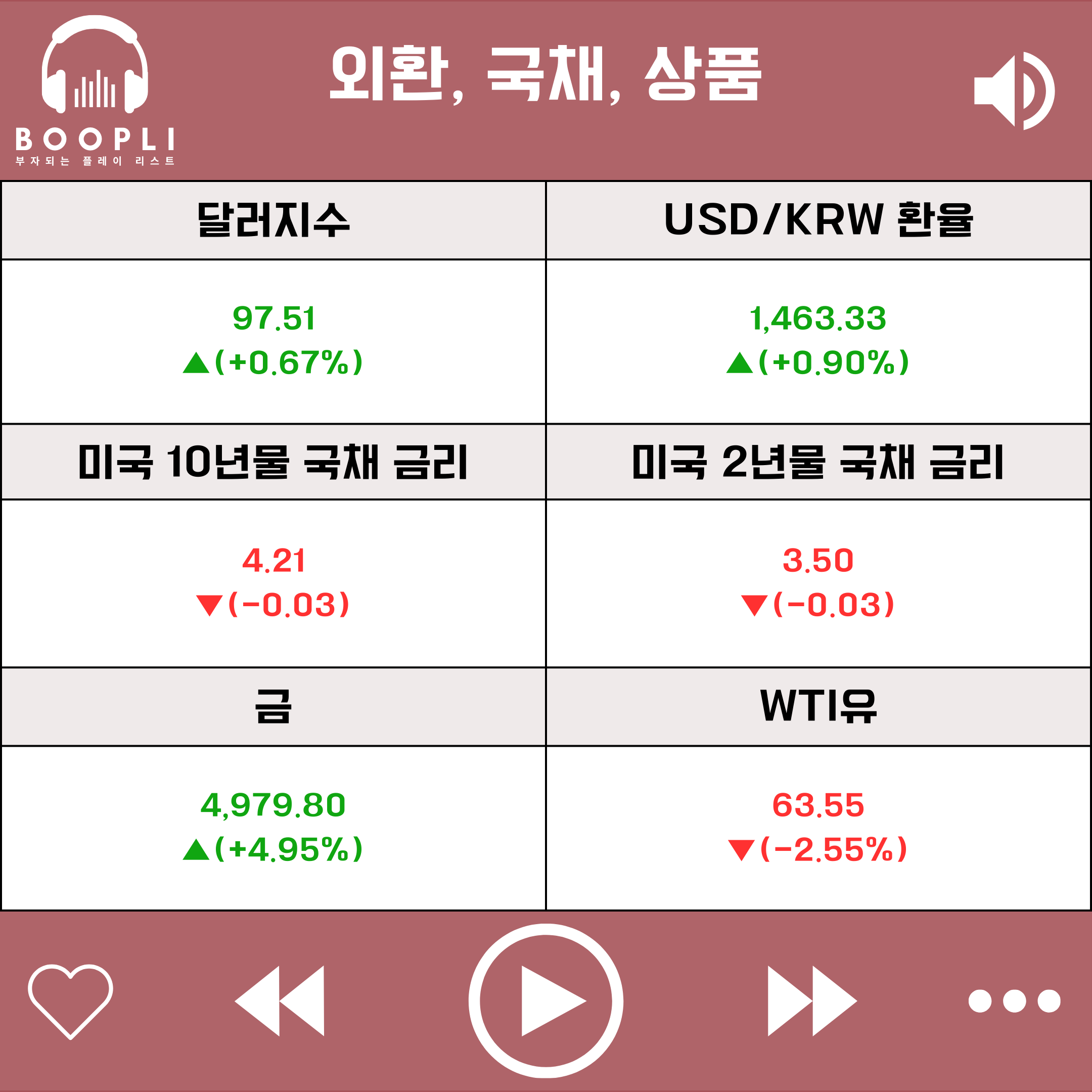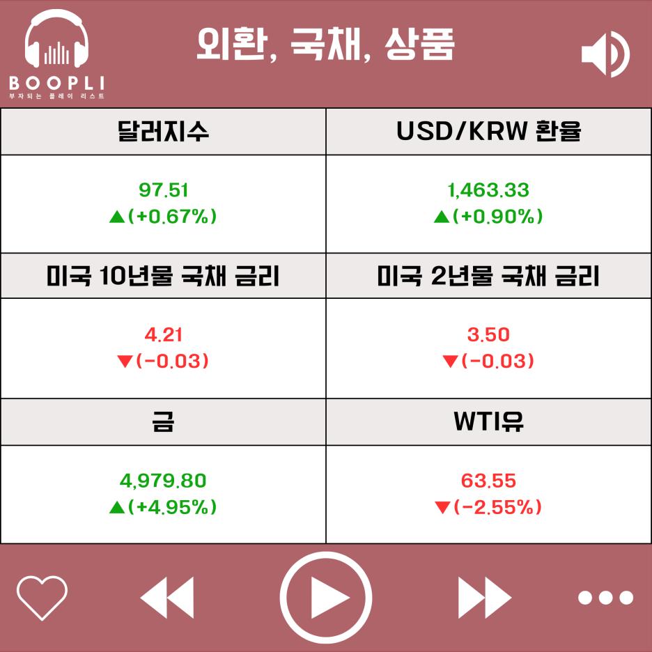 안전자산인 금 가격은 상승했고, 미·이란 협상이 교착되며 국제 유가인 WTI유 가격은 하락했다.
