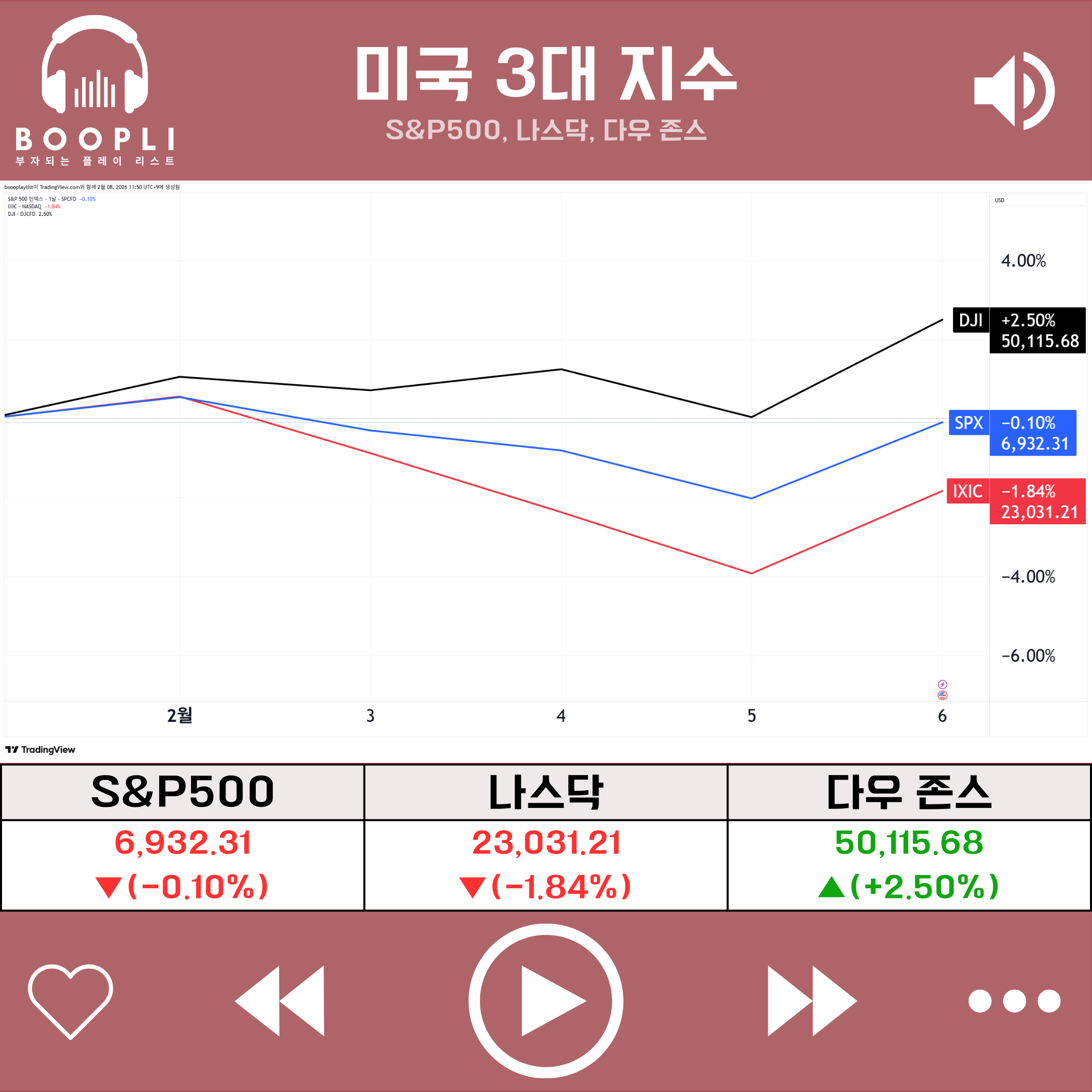 이번 주 미국 증시는 미·이란 지정학적 갈등, 정부 셧다운 종료, AI 자동화 기술 확산에 따른 소프트웨어 산업 구조 변화 우려, 빅테크 실적 발표와 자본지출 확대 부담, 비트코인 및 귀금속 가격 변동성, 그리고 혼재된 경제 지표 흐름을 소화하는 가운데 지수별 차별화된 혼조세를 나타냈다.