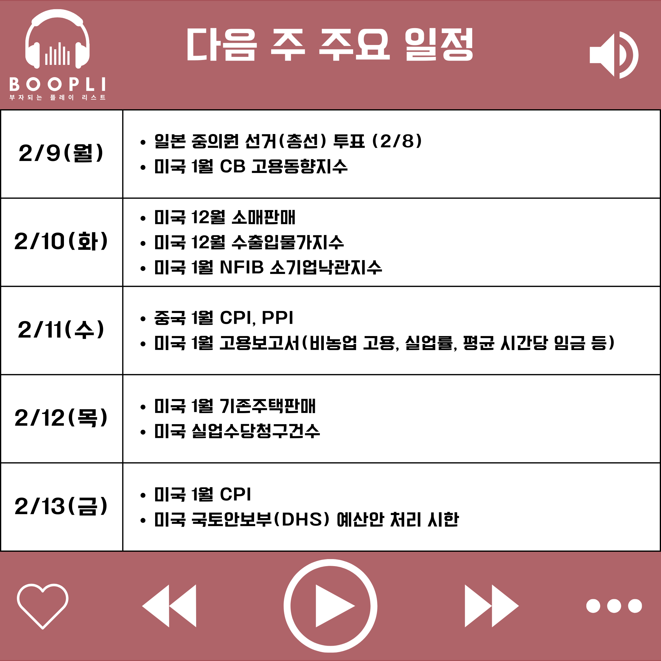 경제 지표 측면에서는 12월 소매판매 발표와 함께 연방정부 셧다운 여파로 연기됐던 1월 고용보고서와 소비자물가지수(CPI)가 예정되어 있다.