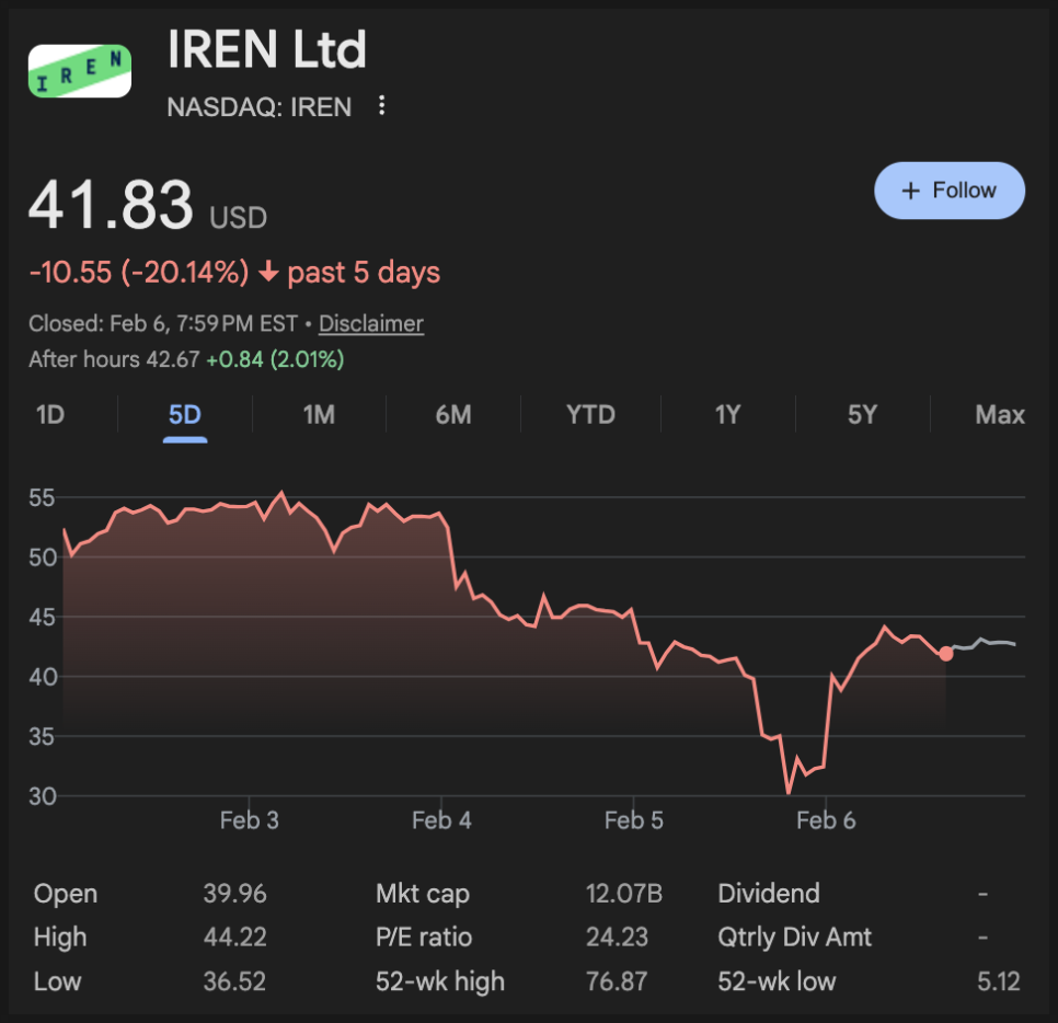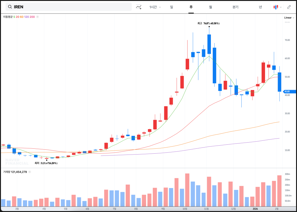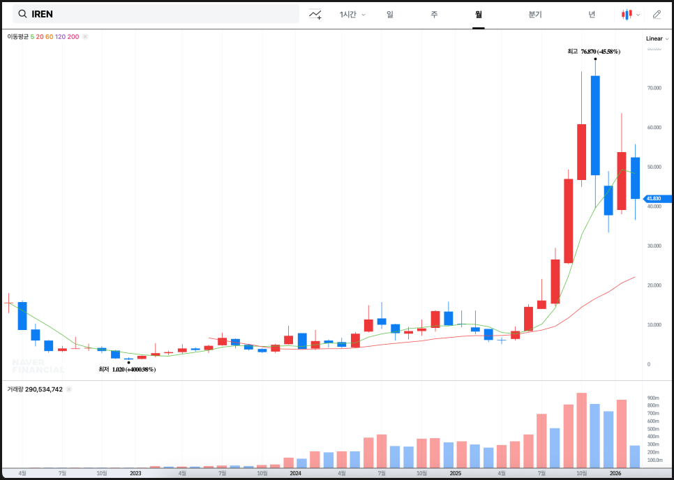 비트코인 채굴은 암호화폐 가격 변동에 따라 실적이 크게 흔들릴 수 있지만, AI 인프라는 장기 계약을 기반으로 비교적 안정적인 매출을 만들 수 있기 때문입니다. 만일 아이렌이 단순한 채굴 기업이었다면 최근 하락폭은 아마 더 컸을 겁니다.