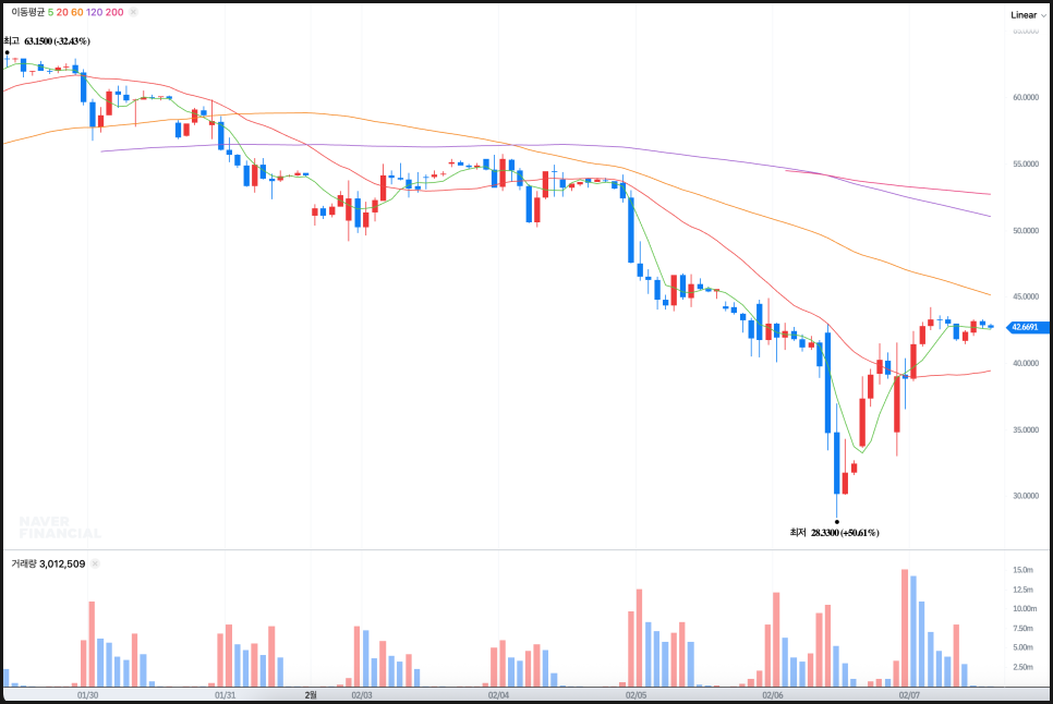 최근 주가 흐름과 투자자 반응을 보면, 이 회사가 얼마나 논쟁적인 위치에 있는지 잘 드러납니다. AI 테마에 대한 기대가 커질 때는 주가가 빠르게 상승했지만, 밸류에이션이나 암호화폐 시장 변동성이 부각될 때는 급격한 조정을 받기도 했습니다.