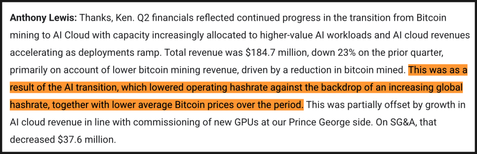 동시에 맥켄지(Mackenzie)와 캐널 플랫츠(Canal Flats)에서는 기존 ASIC 채굴 장비를 GPU로 전환하는 작업이 진행 중이며, 이와 병행해 고객 협상도 활발히 이어지고 있다고 설명했습니다.