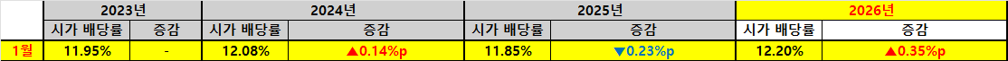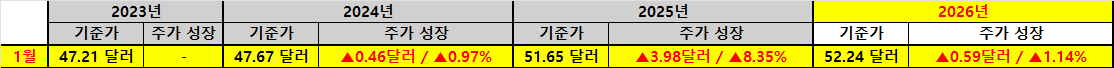 단순히 높은 배당률에만 집중하기보다 더욱 눈여겨봐야 할 부분은 바로 배당금과 주가의 성장성인데 이번 2026년 1월의 데이터는 작년 동기 대비 의미 있는 성장을 증명해냈습니다. 2025년 1월의 주당 배당금이 0.51달러였던 것과 비교하면 올해는 0.02달러가 인상되며 약 4.10%의 배당 성장을 기록했으며 이는 고배당 ETF임에도 불구하고 배당금이 깎이지 않고 오히려 늘어나는 긍정적인 모습을 보여준 것입니다. 주가 측면에서도 2025년 1월 51.65달러에서 올해 52.24달러로 1.14% 상승하며 자산 가치의 훼손 없이 배당을 지급하는 ‘토탈 리턴’ 관점에서의 우수성을 입증했습니다. 과거 2023년부터의 데이터를 복기해보면 2023년 0.47달러였던 배당금이 매년 0.48달러 그리고 0.51달러를 거쳐 올해 0.53달러까지 4년 연속으로 늘어나는 추세를 보이고 있는데 이러한 지속적인 우상향 곡선은 투자자들에게 깊은 신뢰를 줍니다. 시가 배당률 또한 2023년 11.95%에서 시작해 현재 12.20%까지 소폭 상승하며 주가 상승분보다 배당금의 증가 폭이 더 컸음을 알 수 있는데 이는 인플레이션 환경 속에서 실질 구매력을 보존해주는 훌륭한 투자 수단이 될 수 있음을 의미합니다.