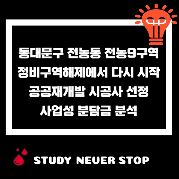 오늘은 동대문구 전농9구역 정비구역해제에서 공공재개발 시공사 선정 분담금 분석입니다.