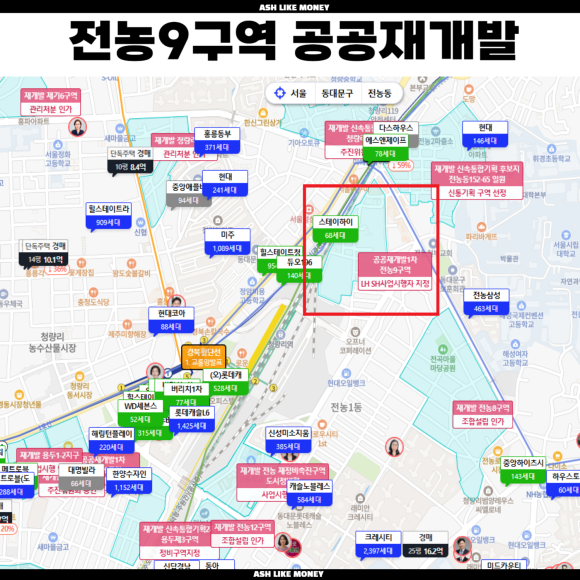 전농9구역은 20년도 다시 재개발을 진행하기 위해 추진위원회를 구성하고 공공재개발 후보지 공모신청을 했다. 21년 공공재개발 후보지 선정이 된 후 22년 정비구역 지정완료했다. 23년 정비구역 지정 완료 후 사업시행자를 LH로 선정, 정비사업전문관리업자로 (주)제이앤케이도시정시로 선정하였다. 25년 공동사업 시행자 변경고시까지 마쳤다. 최근에는 시공사로 현대엔지니어링을 선정하였으며 용적률을 높여 최고 층수를 39층까지 올려 일반분양 세대수를 증가시키려고 한다.