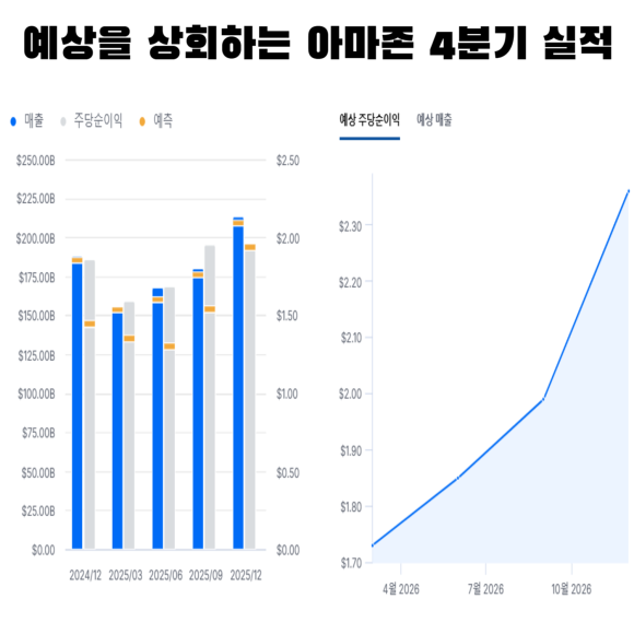 아마존은 매출 성장 자체는 견고할 것으로 예상하지만 대규모 CAPEX 확대와 이익 가이던스가 시장 기대보다 살짝 부진할 가능성이 시장에서 부정적으로 보았다. 아마존은 26년에 설비투자를 작년 대비 60% 증가한 규모로 진행하며 이 금액이 데이터센터, 반도체, 네트워크 구축 등을 계획하고 있다. 이 모든게 다가오는 AI산업을 선두하기 위한 것으로 자본적지출이 많지만 이 지출이 전부 수익으로 들어오느냐는 미지수이다.