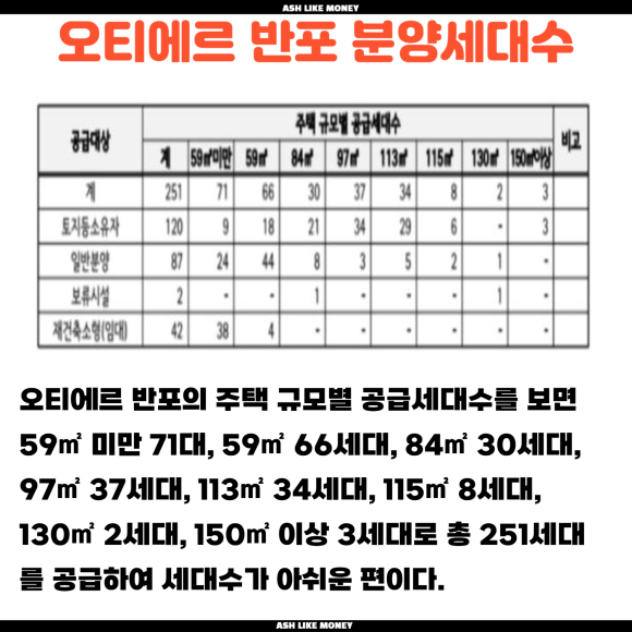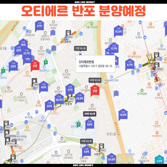 조합원들과 시공사 간의 공사비 갈등이 발생하여 당초 계획보다 분양일정이 조정되면서 2월~3월로 미루어졌다. 후분양 방식으로 중도금 납입 절차가 없고 계약 후 잔금을 납부한다. 오티에르 반포는 7호선 반포역 초초역세권이며 평지에 강남 일자리지구 배후지역이다. 아쉬운 것은 세대수가 적고 반포라는 이름이 붙었지만 한강뷰가 불가능하다. 근처에는 정말 엄청난 아파트들이 모여있는데 "메이플자이", "신반포자이", "반포르엘", "반포자이"가 있어 초고가 아파트의 수혜를 받는 곳이다.