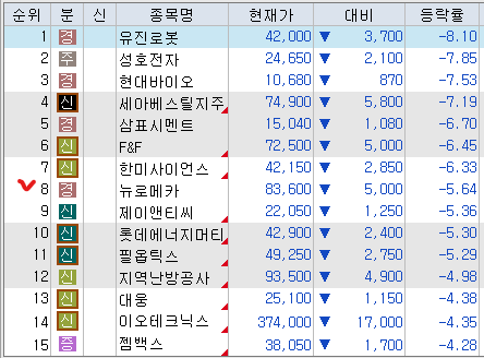 반면, 한국금융지주의 실적이 시장 예상치를 하회하며 증권주가 동반 하락