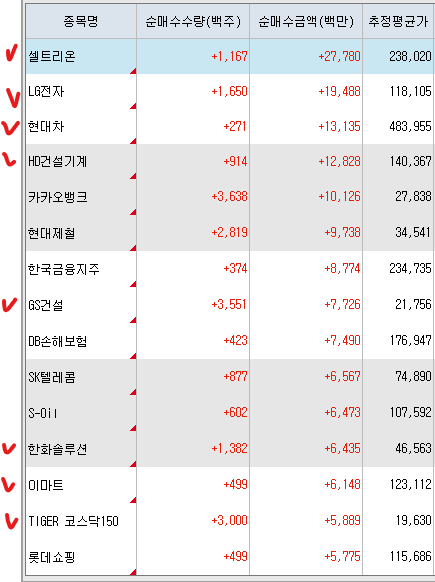 매수 : 맥쿼리인프라 골프존 삼성전자우 셀트리온 한국전력 엔씨소프트 이마트 에코프로 알테오젠 신성이엔지 LG디스플레이 CJCGV 카카오 Tiger차이나전기차 GS건설