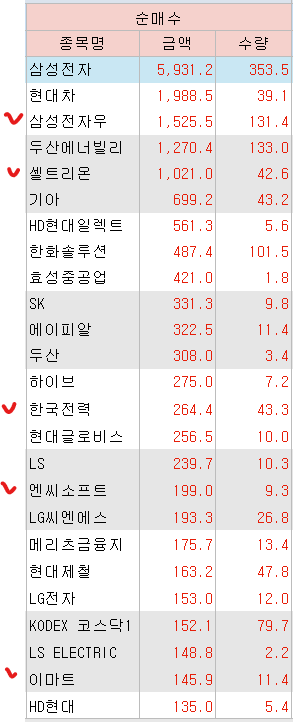 KOSPI는 외국인이 +8,575억 원을 순매수, 기관이 +6,184억 원을 순매수했음. 외국인은 KOSPI에서 전기/전자와 운송장비/부품 업종을 매수했고, 금융과 건설 업종을 매도